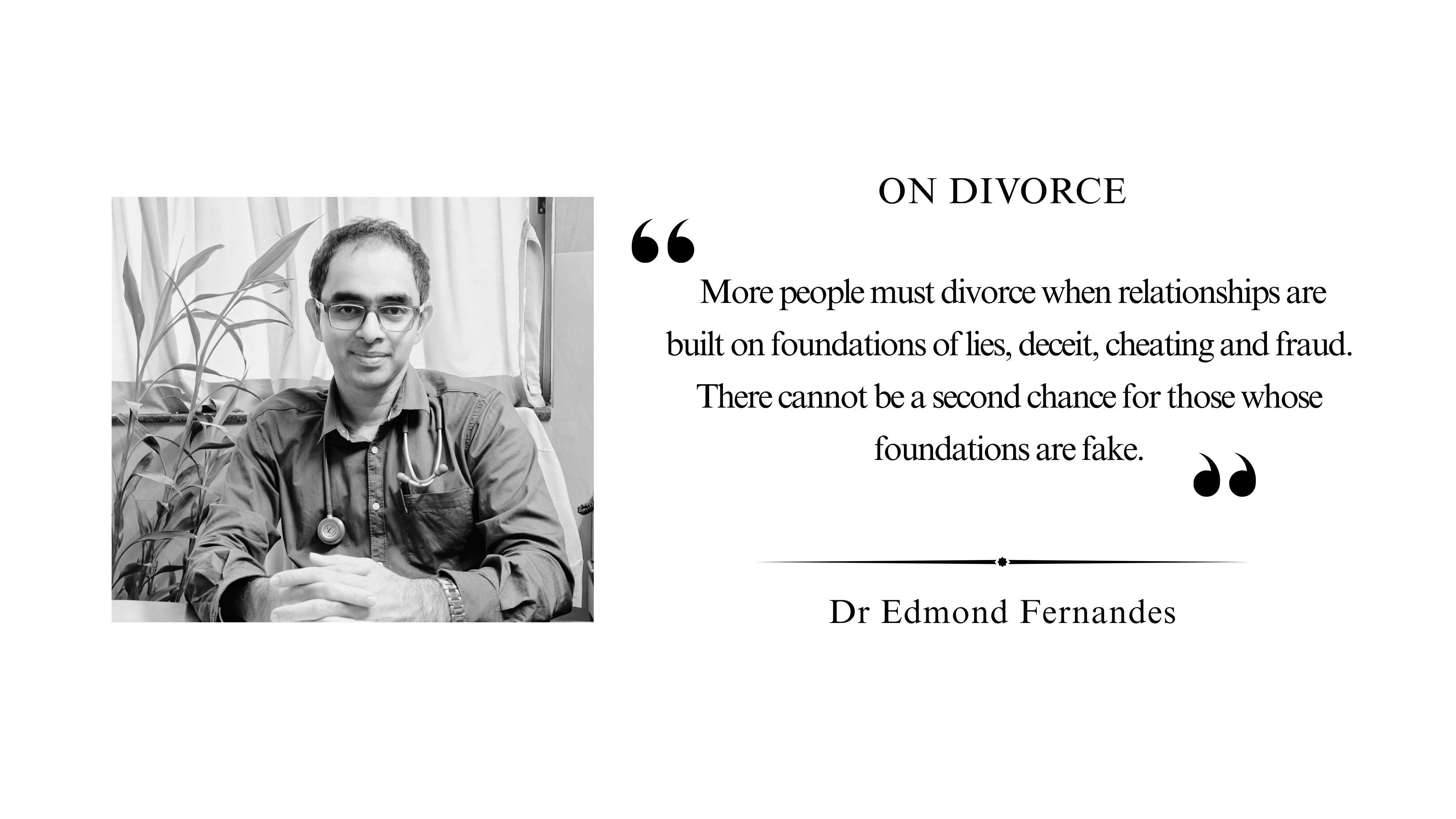 More people must divorce when relationships are built on foundations of lies, deceit, cheating and fraud. There cannot be a second chance for those whose foundations are fake.