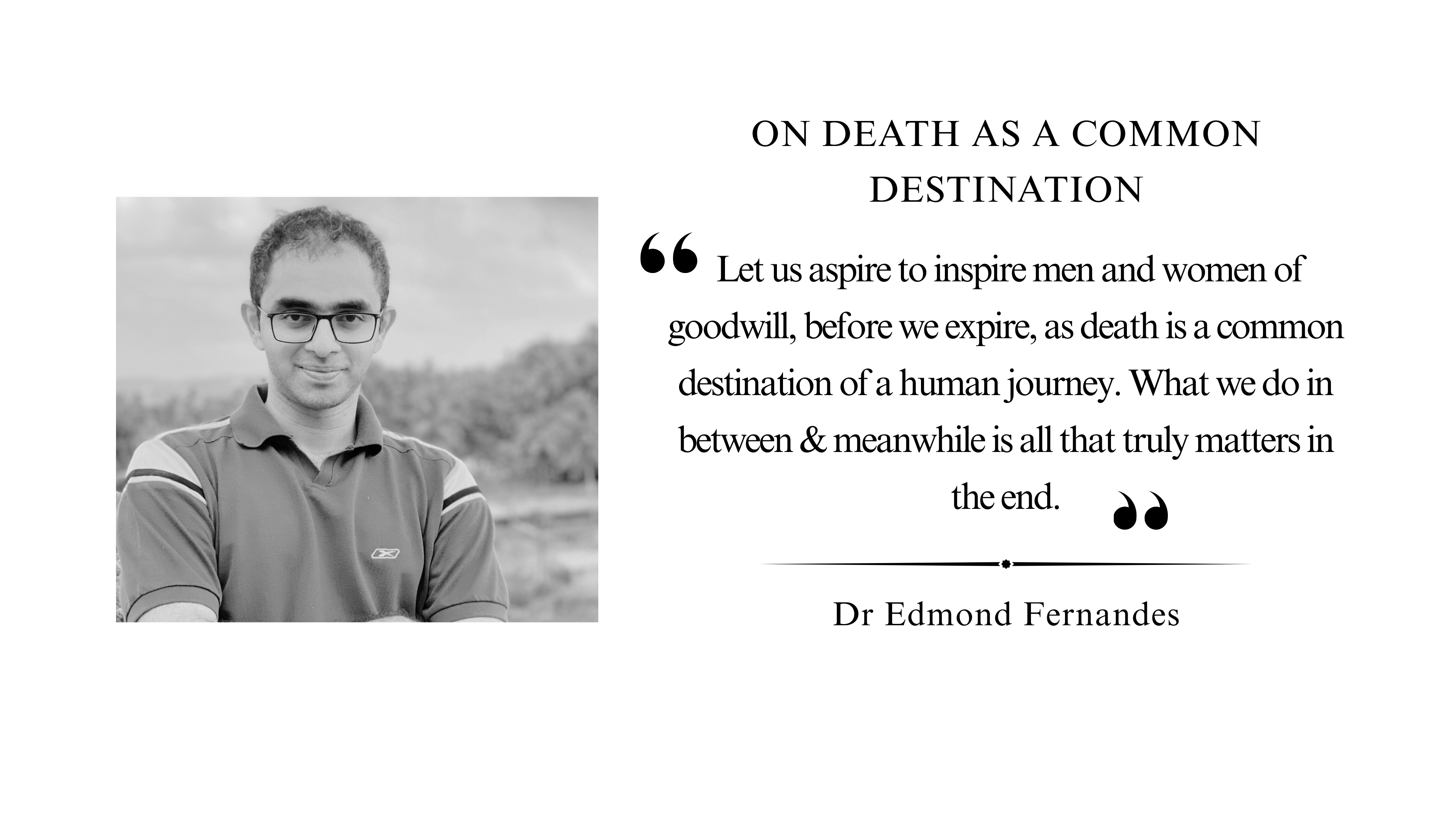 Let us aspire to inspire men and women of goodwill, before we expire, as death is a common destination of a human journey. What we do in between & meanwhile is all that truly matters in the end.