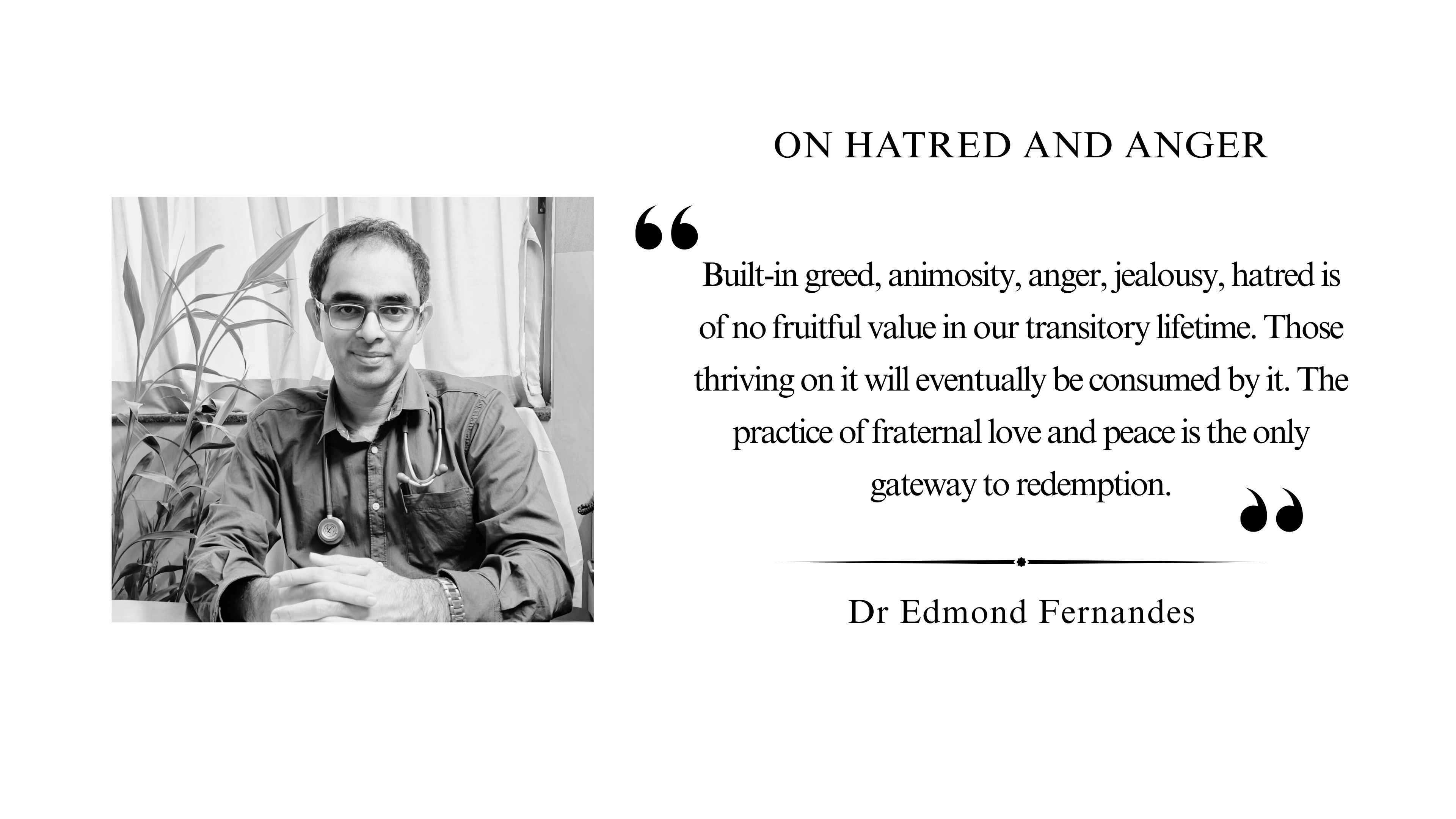 Built-in greed, animosity, anger, jealousy, hatred is of no fruitful value in our transitory lifetime. Those thriving on it will eventually be consumed by it. The practice of fraternal love and peace is the only gateway to redemption.