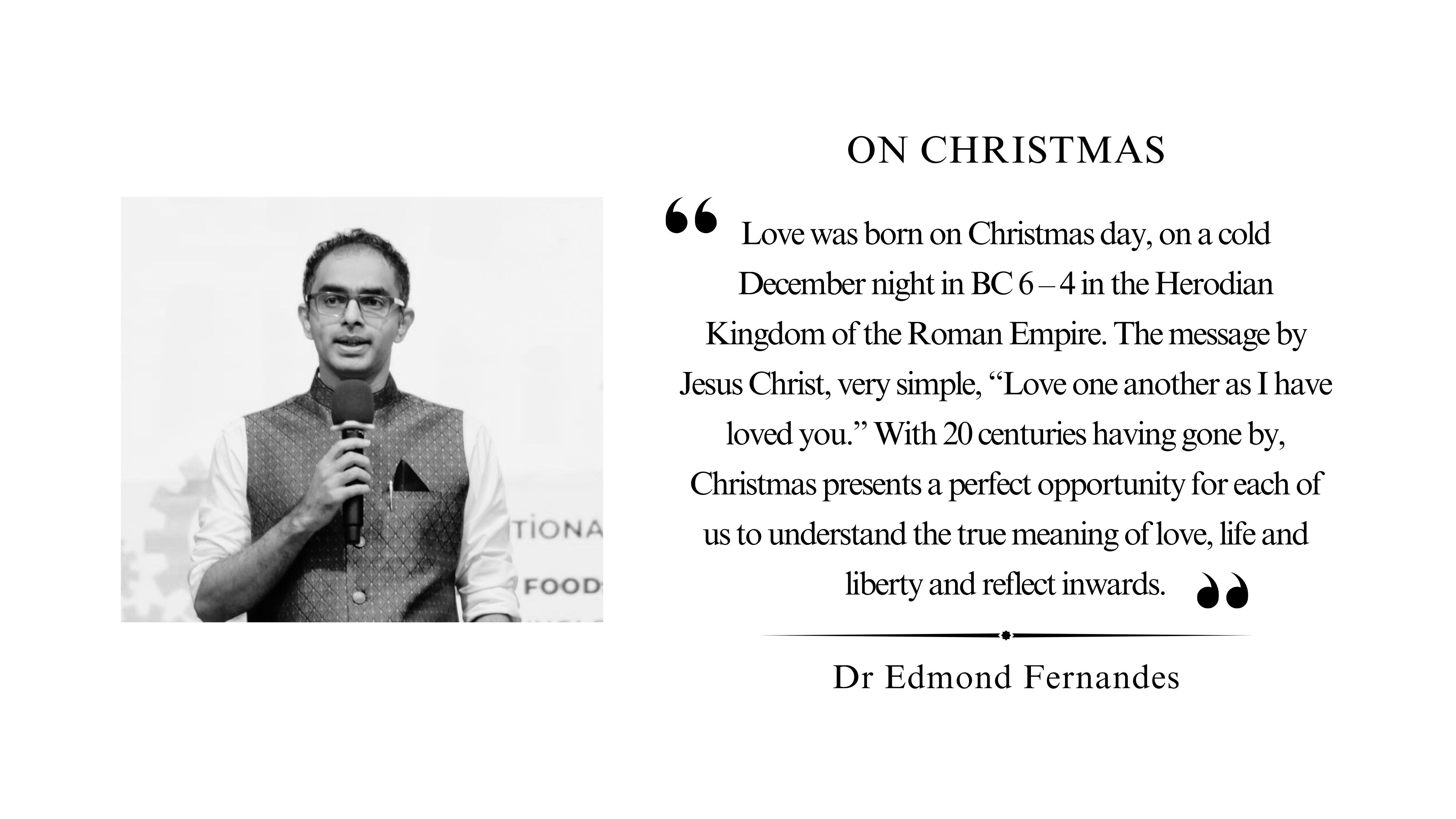Love was born on Christmas day, on a cold December night in BC 6 – 4 in the Herodian Kingdom of the Roman Empire. The message by Jesus Christ, very simple, “Love one another as I have loved you.” With 20 centuries having gone by, Christmas presents a perfect opportunity for each of us to understand the true meaning of love, life and liberty and reflect inwards.